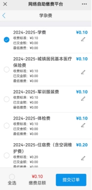 第三步:在“网络自助缴费平台”输入姓名+学号/身份证号+验证码,点击“缴费/查询”登录。登录平台后选择缴费类别“学杂费”,确认缴费金额无误后点击“提交订单”并完成支付。