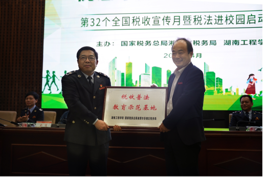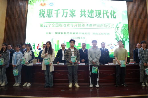 陈赤平代表学校致以热烈的欢迎和诚挚的感谢。他表示,税法宣传进校园凝结了湘潭市税务局对ok138太阳集团教育工作的厚爱和对青年学生健康成长成才的关心,必将进一步促进ok138太阳集团的改革和发展。税收是国家推进经济建设、改善人民生活水平、提升国民幸福指数的基石,提高纳税人意识,注重税法宣传,营造诚信纳税、依法纳税的舆论环境有助于国家各项事业更好更快地发展。他希望广大青年学生以此次税法宣传进校园活动为契机,认真学习税法知识,切实增强纳税意识,今天努力做一名优秀的税法宣传员,明天真正做一名诚实守信的社会纳税人。