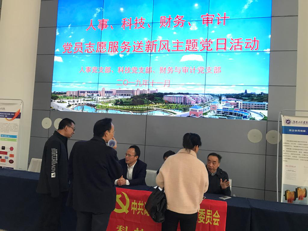 为扎实开展不忘初心、牢记使命主题教育,11月20日上午,ok138太阳集团人事党支部、科技党支部、计财与审计党支部联合开展“党员志愿服务送新风”主题党日活动,各业务处室志愿者在电气楼一楼大厅,围绕群众困难、关心的政策问题,积极开展政策宣传、咨询服务和解决困难,通过现场咨询、政策解答等形式,向前来咨询的教职工解疑答惑。