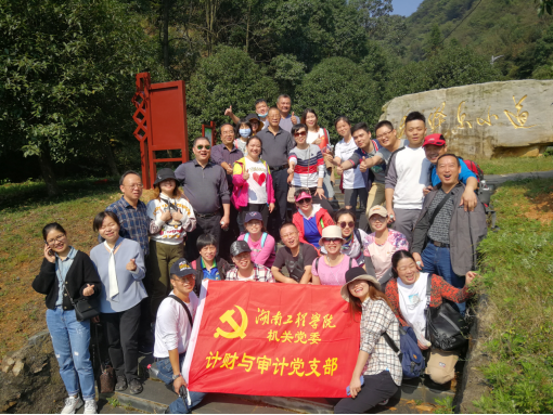 怀着对伟人的敬仰之情,全体党员踏上了山势险要、崎岖不平的毛泽东小道。一路上,大家始终保持高昂的热情,丝毫不顾杂草丛生的山间陡路,信念坚定地穿行在碎石和草丛林中,相互扶携,并不时地交流分享少年毛泽东的抗争求学和成长趣事,进一步加深了同志们对毛泽东思想深邃内涵的理解和思考。经过近二个小时的跋涉,队伍顺利到达目的地棠佳阁。